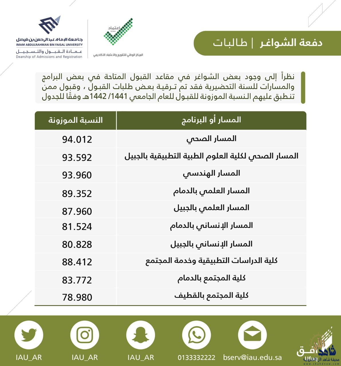الدفعة الثالثة من المرشحين والمرشحات للقبول في المسارات والبرامج المختلفة Imam Abdulrahman Bin Faisal University