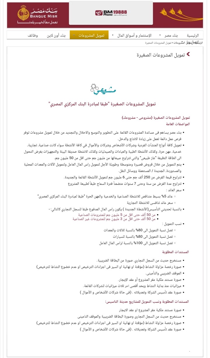 قرض تمويل المشروعات الصغيرة من بنك مصر تمويل يصل لـ6 مليون جنيه لكافة الانشطة الفردية والشركات كلمة دوت أورج