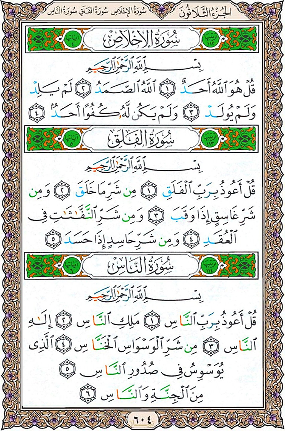قرآن تبیان جزء 30 حزب 60 سوره اخلاص صفحه 604