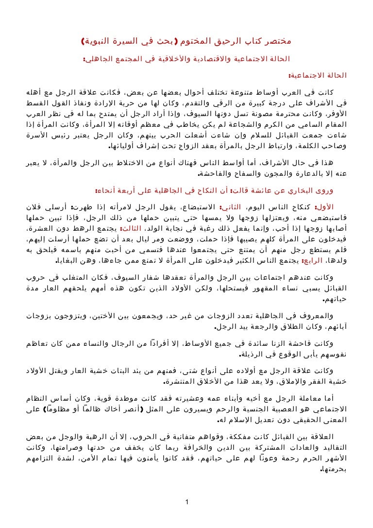 مختصر كتاب الرحيق المختوم بحث في السيرة النبوية