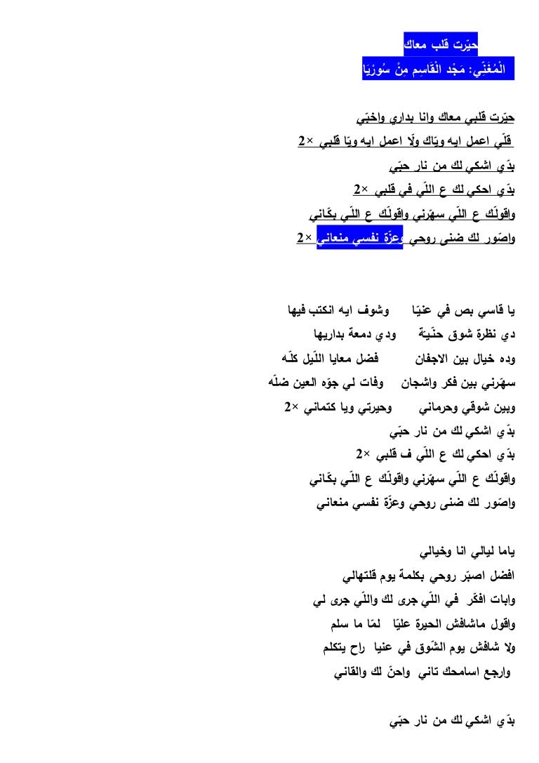 كلمات اغنية حيرت قلبي معاك موقع المحيط
